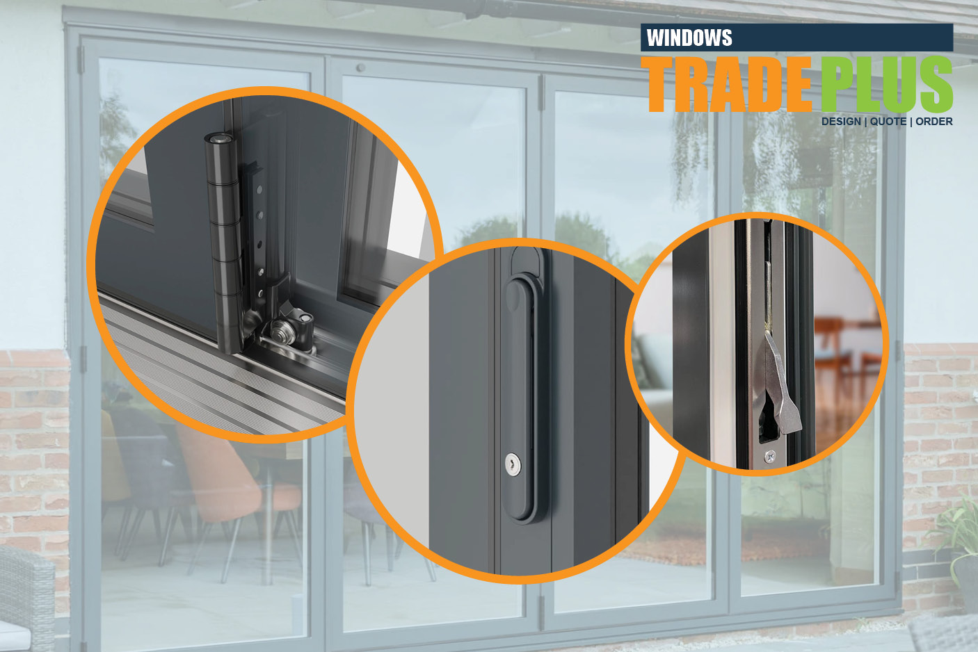 Windows Trade Plus manufactures all bi-fold doors using the AluK range of aluminium the optio bsf70 bi-fold. The door has been designed to be able to meet the PAS 24 certification and have been certified to a secure by design scheme.