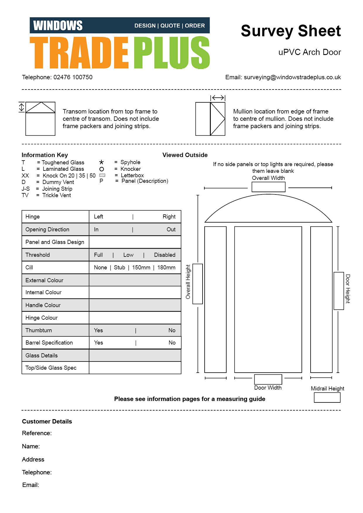 uPVC Arch Door Survey Sheet